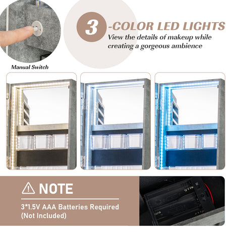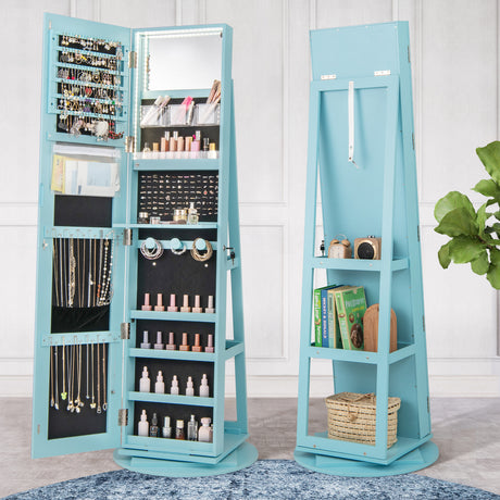 360° Rotating Mirrored Jewelry Cabinet Armoire 3 Color LED Modes Lockable
