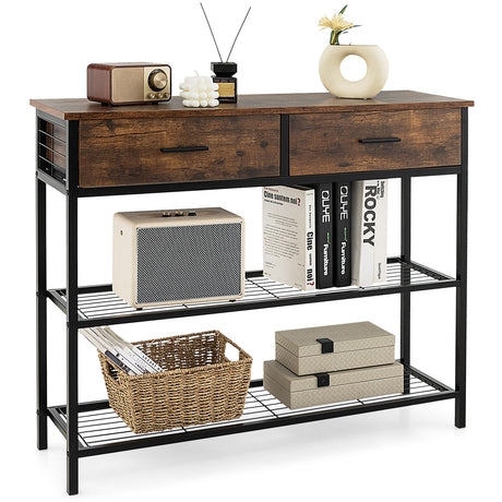 39.5 Inch Entryway Table with 2 Drawers and 2-Tier Shelves