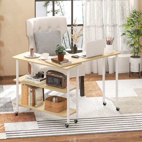 360° Rotating Sofa Side Table with Storage Shelves and Wheels