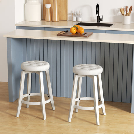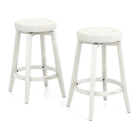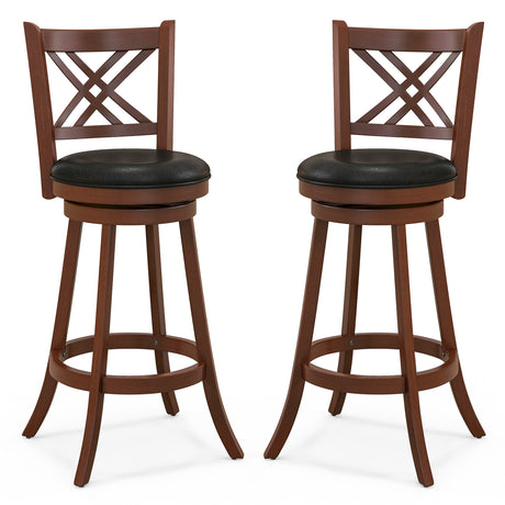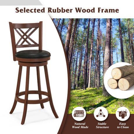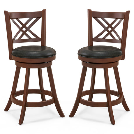 360-Degree Swivel Upholstered Rubberwood Frame Bar Stool Set of 2 with Footrest-24 inches