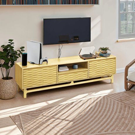 Acacia Elara Solid Wood TV Stand with Storage and Cable Management for TVs up to 80"