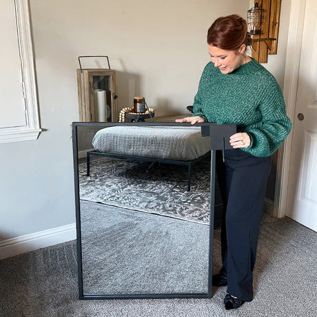 Architectural Black Iron Tripod Wall Mirror | Modern Statement Piece