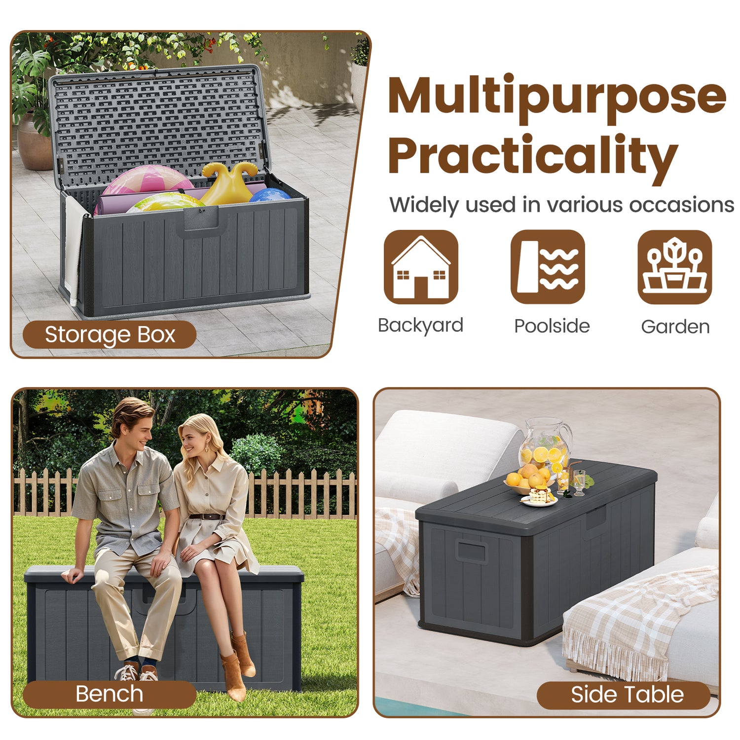 100 Gallon Large Deck Box with Lockable Lid for Patio