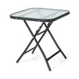 Material: Tempered glass steel Color: Black Overall dimension: 18" x 18" x 18.5"(L x W x H) Folding dimension: 26.5" x 18" x 2.5"(L x W x H) Weight capacity: 110 lbs Net weight: 9 lbs Box Qty: 1(May vary by batch)Package includes: 1 x Square table