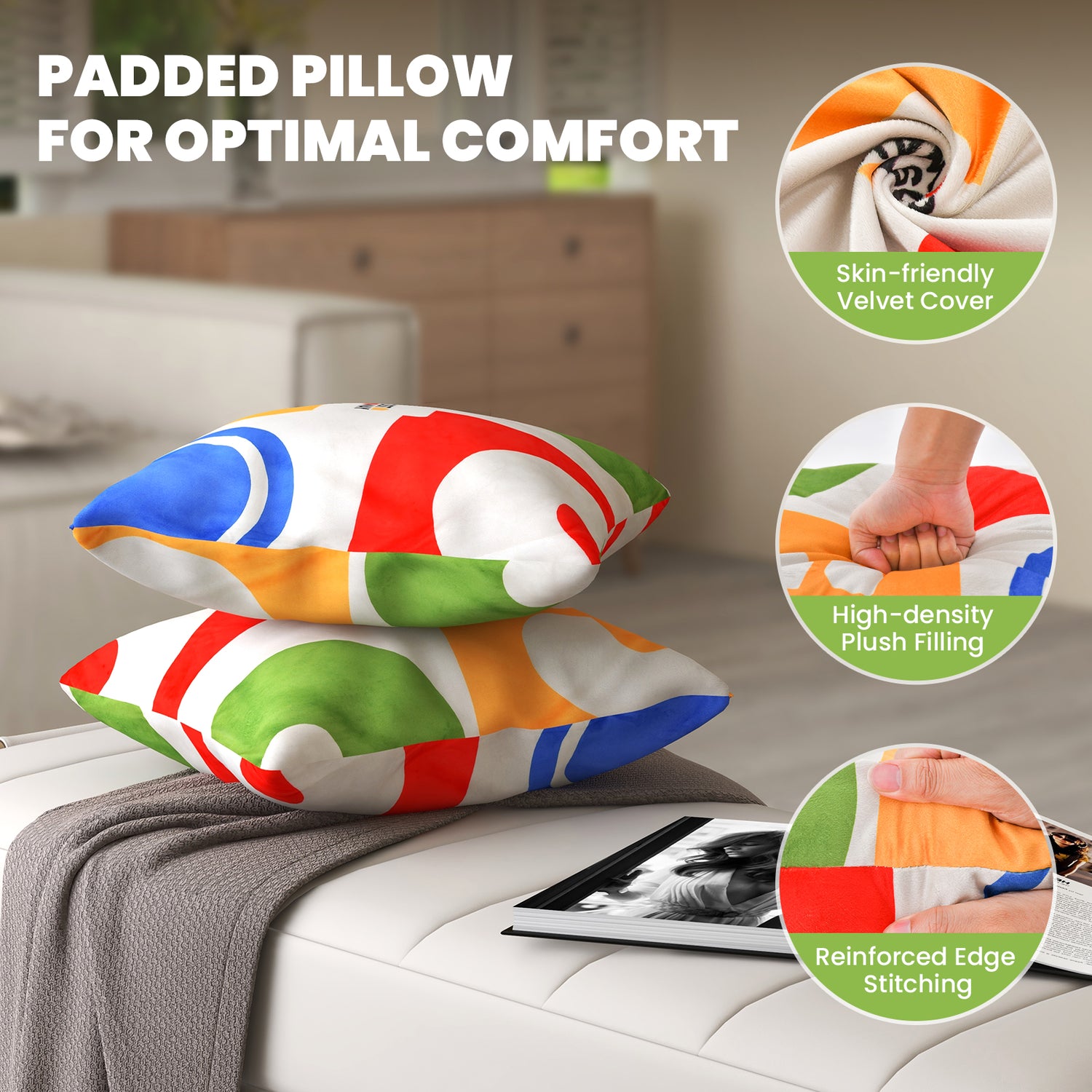 18 x 18 Inch Inches Square Throw Pillows with Removable and Washable Velvet Pillow Cases