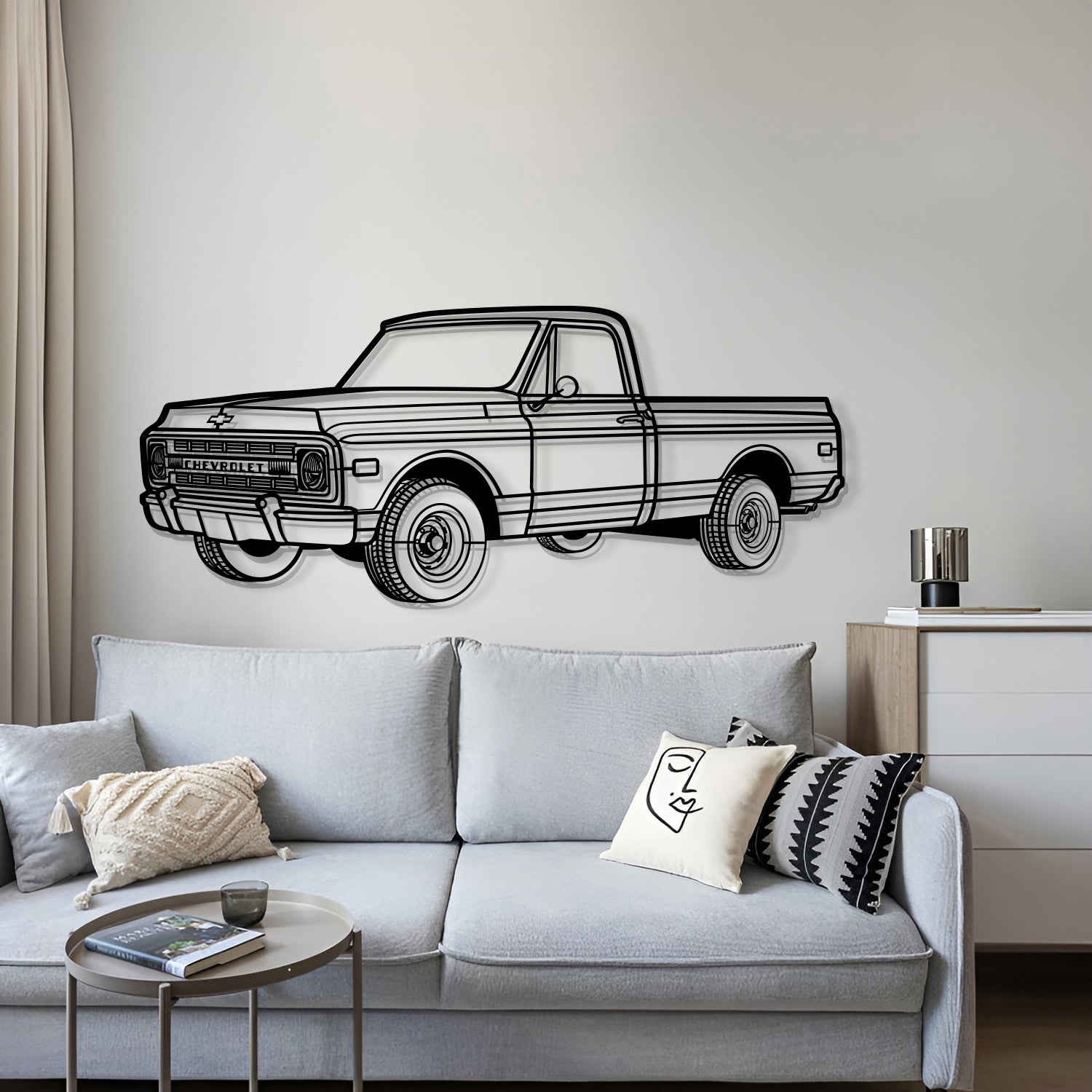 This 1968 C10 Perspective Metal Car Wall Art will turn any car enthusiast's home, garage, hallway, living room, bedroom, or office into a unique space, add a stylistic look and captivate petrolheads as well as visitors.