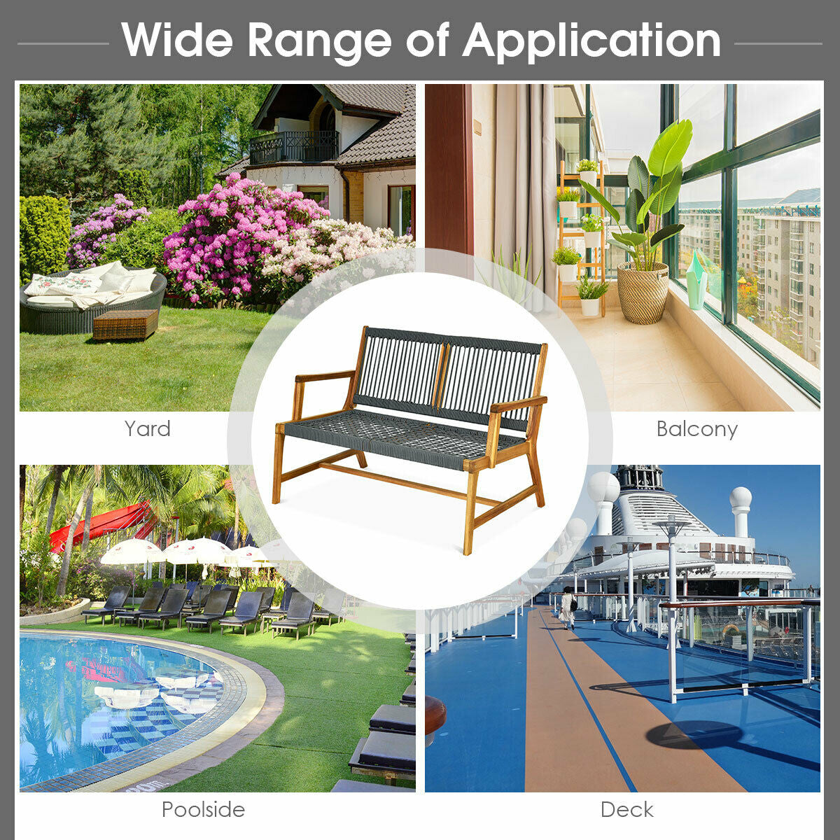 2-Person Acacia Wood Yard Bench for Balcony and Patio - Gray is backordered and will ship as soon as it is back in stock.