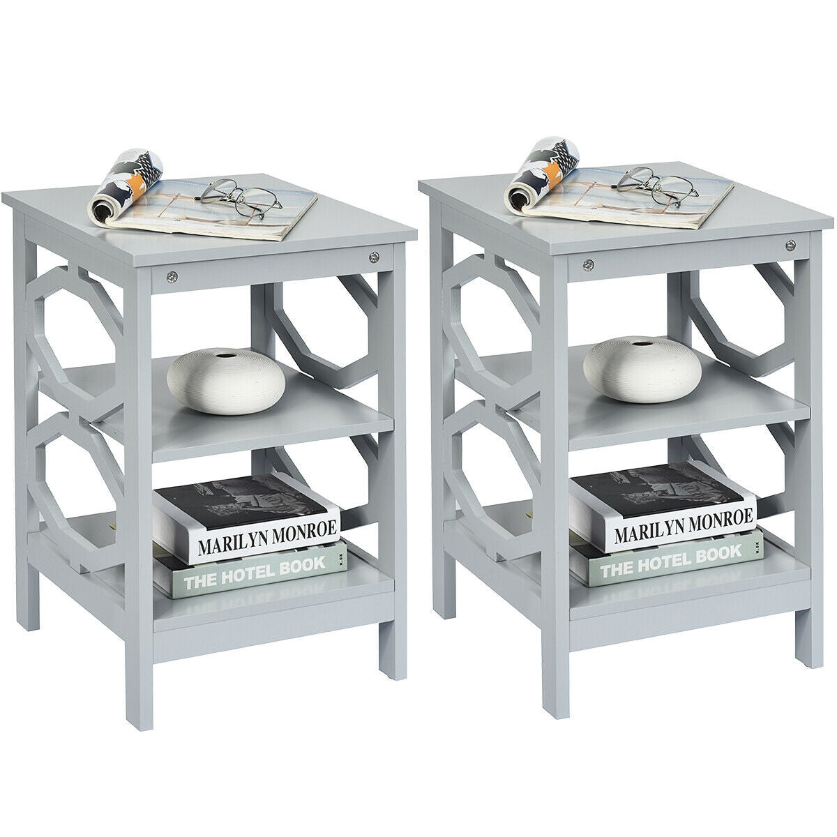 2 Pieces 3-tier Nightstand Sofa Side End Accent Table Storage Display Shelf-Gray - Gray is backordered and will ship as soon as it is back in stock.