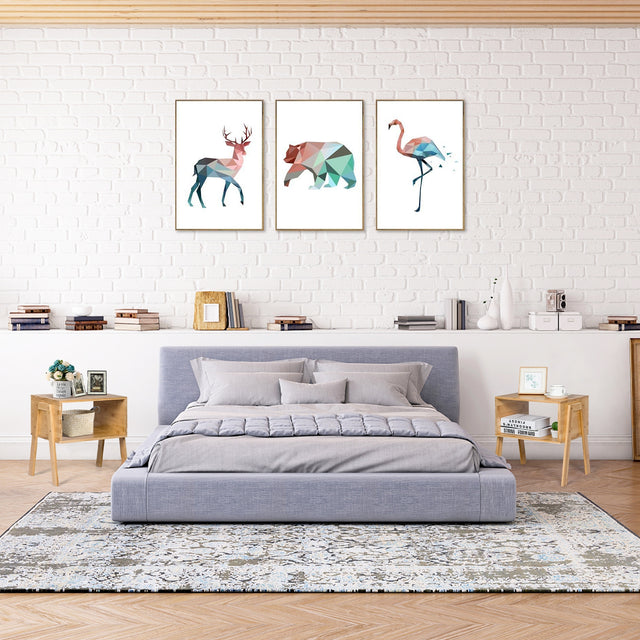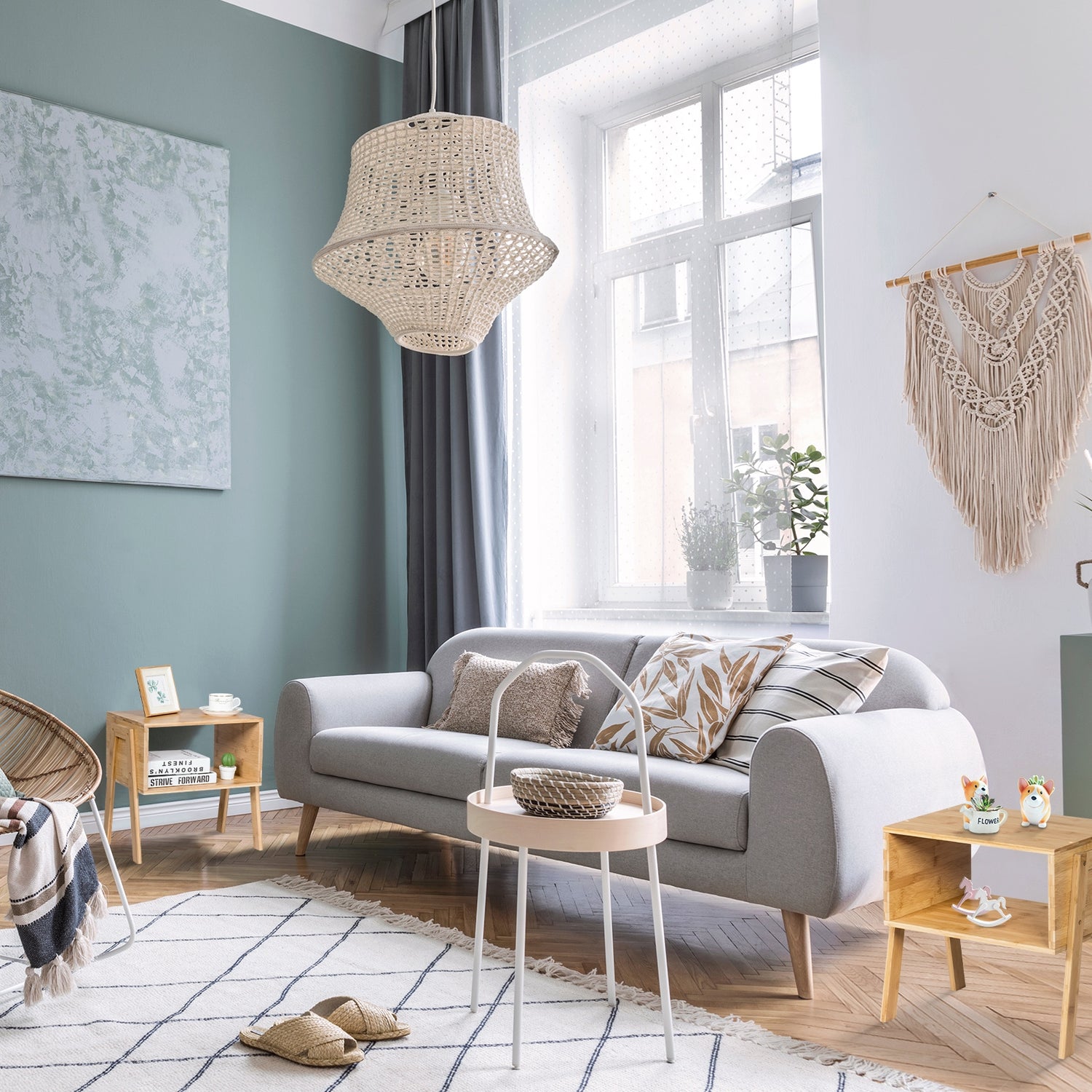2 Pieces Bamboo Nightstand Sofa Table with Storage Shelf