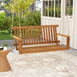 2-Seat Acacia Wood Porch Swing Bench with 2 Hanging Hemp Ropes