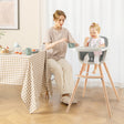 Color: Beige/Yellow/Pink/Gray Material: Beech wooden legs PP tray PE seat PU cushion High chair size: 20.5" x 21.5" x 36" (L x W x H) Short feeding chair size: 17.5" x 17.5" x 26" (L x W x H) Tray size: 15" x 8.5" (L x W) Net weight: 10.5 lbs Weight capacity: 35 lbs Applicable age: 6 months - 3 years old Box Qty: 1(May vary by batch)