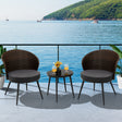 3 Pieces Patio Rattan Bistro Set with 2 Seat Cushions and Tempered Glass Tabletop-Brown