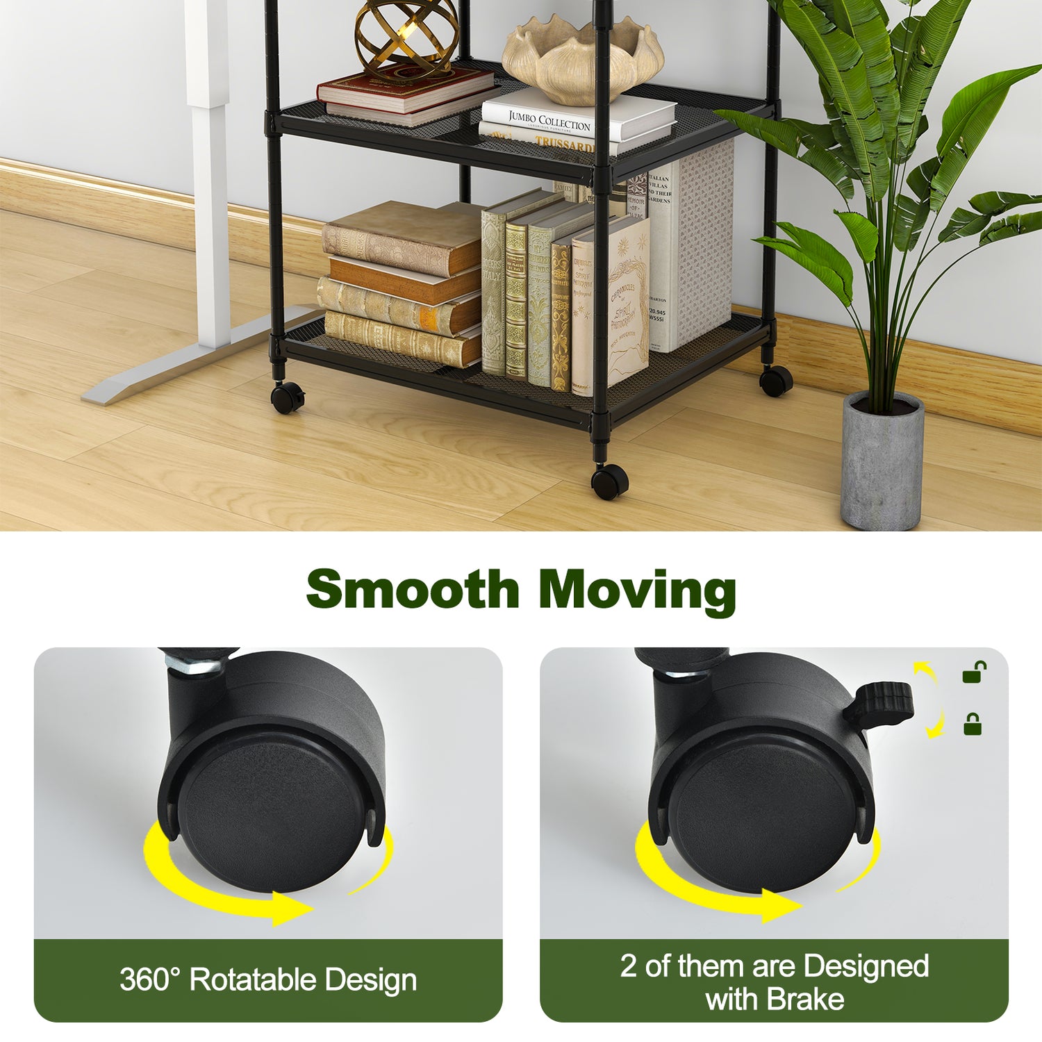 3 Tier Printer Stand Rolling Fax Cart with Adjustable Shelf and Swivel Wheels