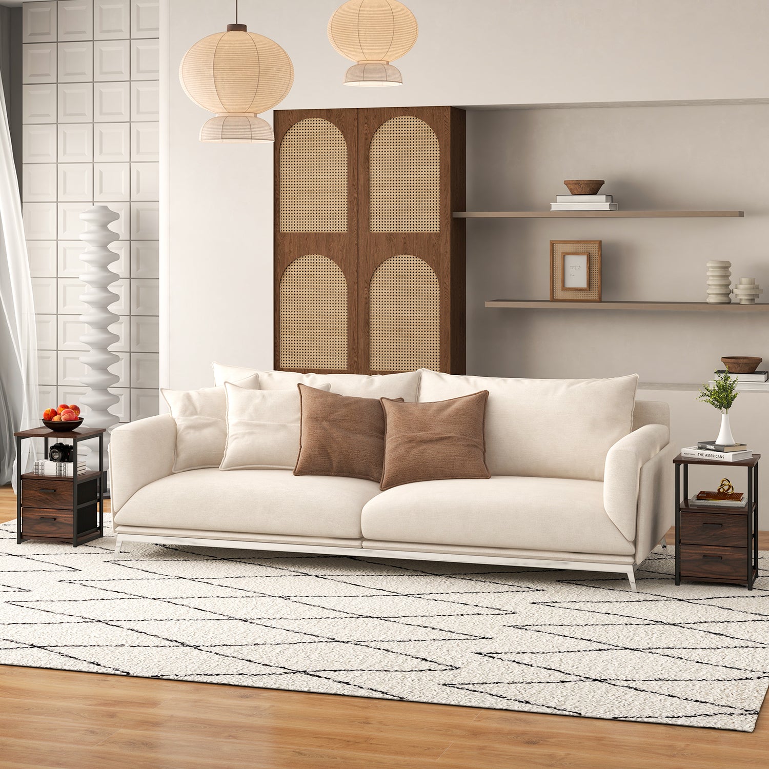 3-Tier Retro Nightstand with 2 Removable Fabric Drawers and Open Shelf-Walnut