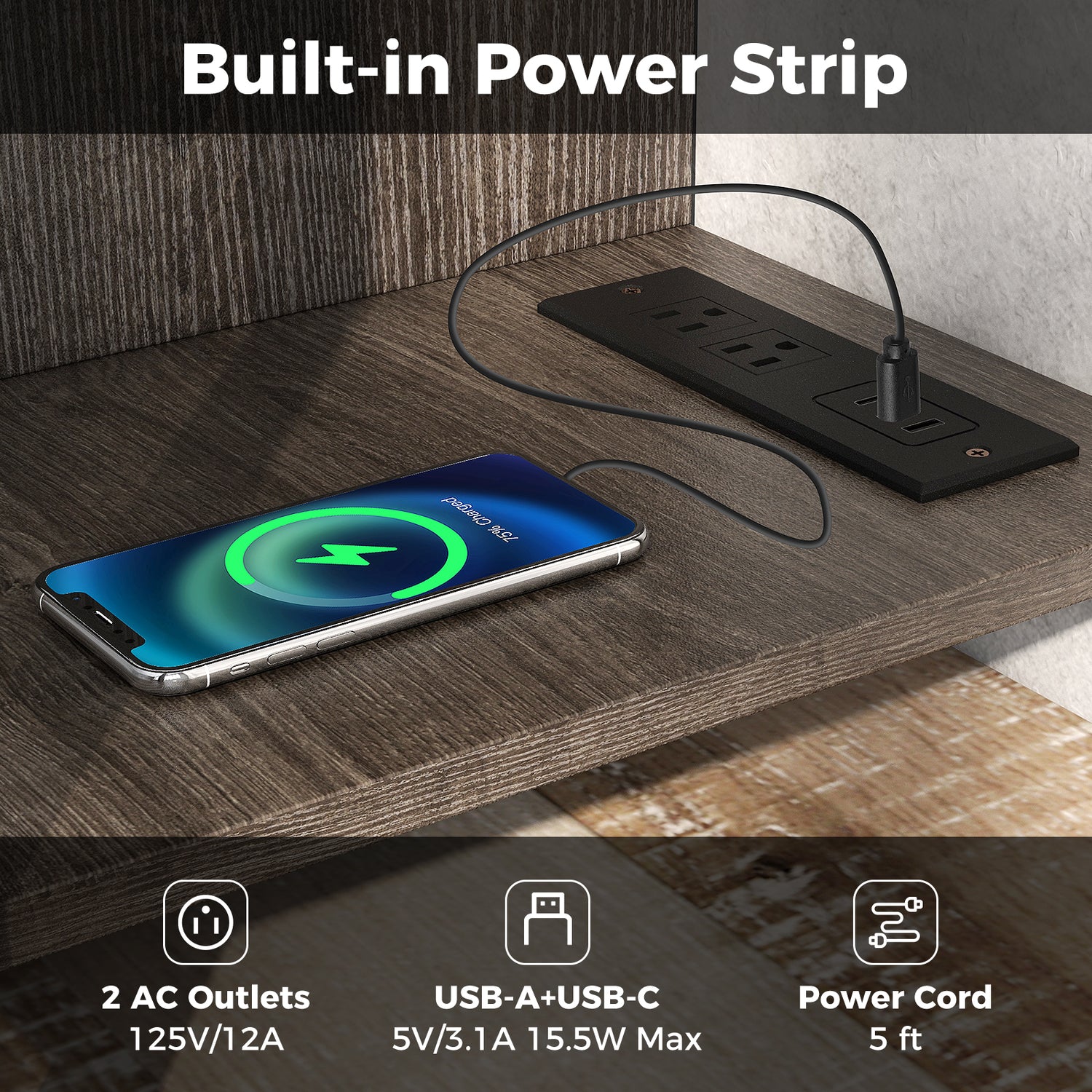 Color: Gray Material: Engineered Wood Metal Overall Dimensions: 41.5" x 16" x 20"(L x W x H) Dimensions of Side Compartment: 10" x 14" x 15.5"(W x D x H) Dimensions of Middle Shelf: 17.5" x 13.5" x 7"(L x W x H) Dimensions of Bottom Shelf: 17.5" x 13.5" x 7.5"(L x W x H) Clearance Between Adjustable Levels: 1.4" Clearance Between Floor: 2.5" Power Cord Length: 5 ft USB-A+USB-C: 5V AC Outlet: 125V/12A Weight Capacity of Tabletop: 165 lbs Weight Capacity of Each Shelf: 45 lbs Net Weight: 35.5 lbs Box Qty: 1(May vary by batch)