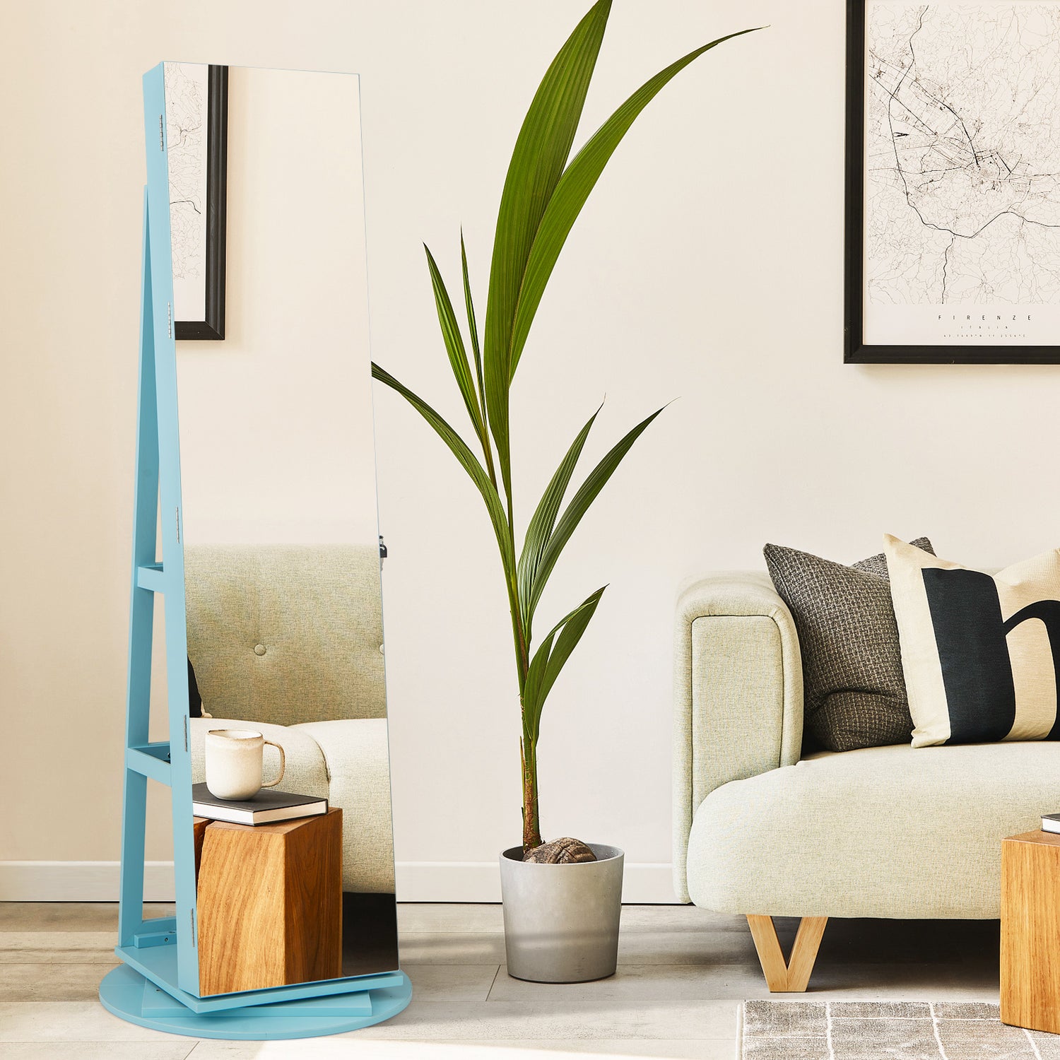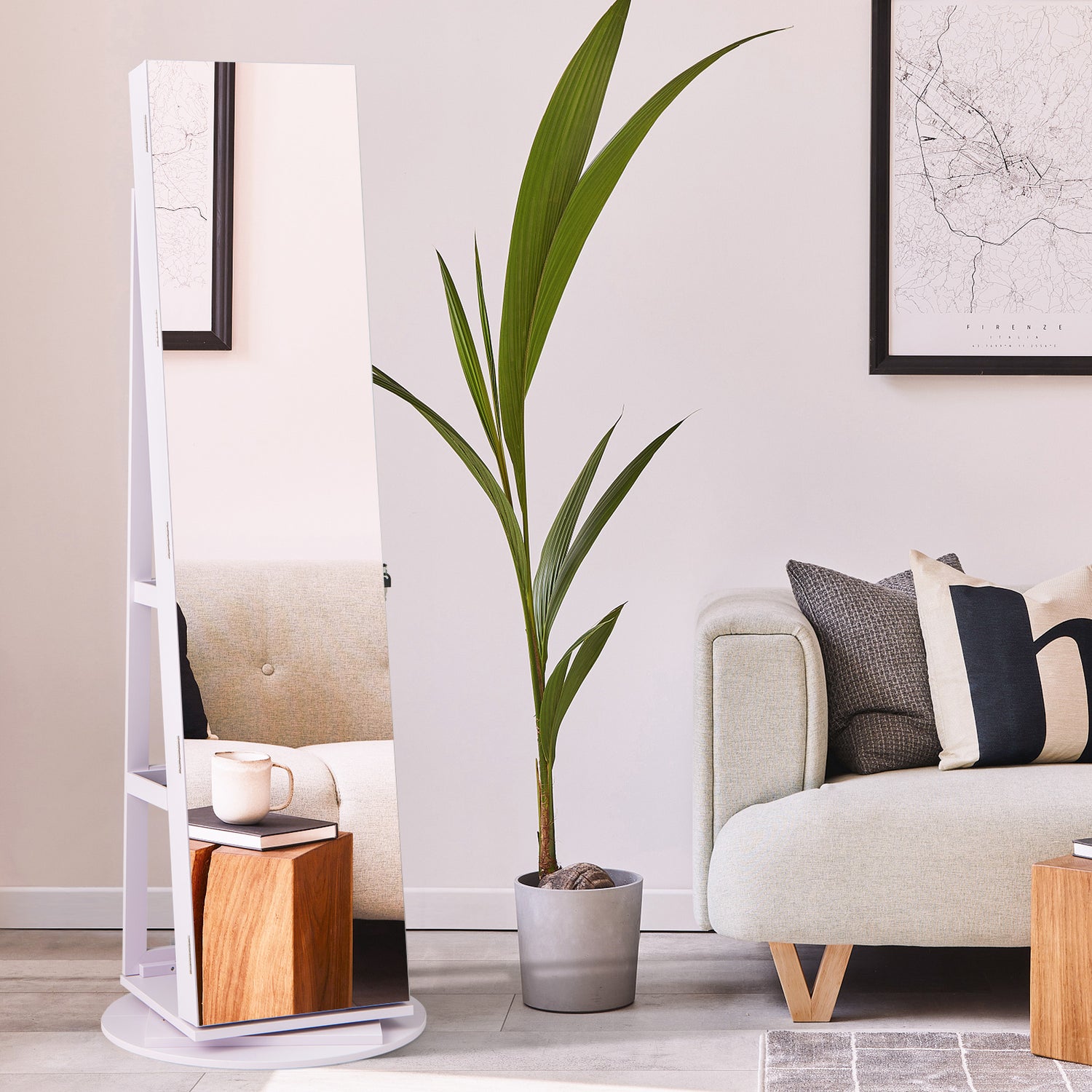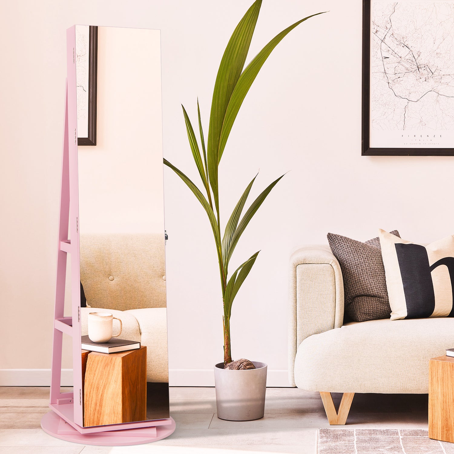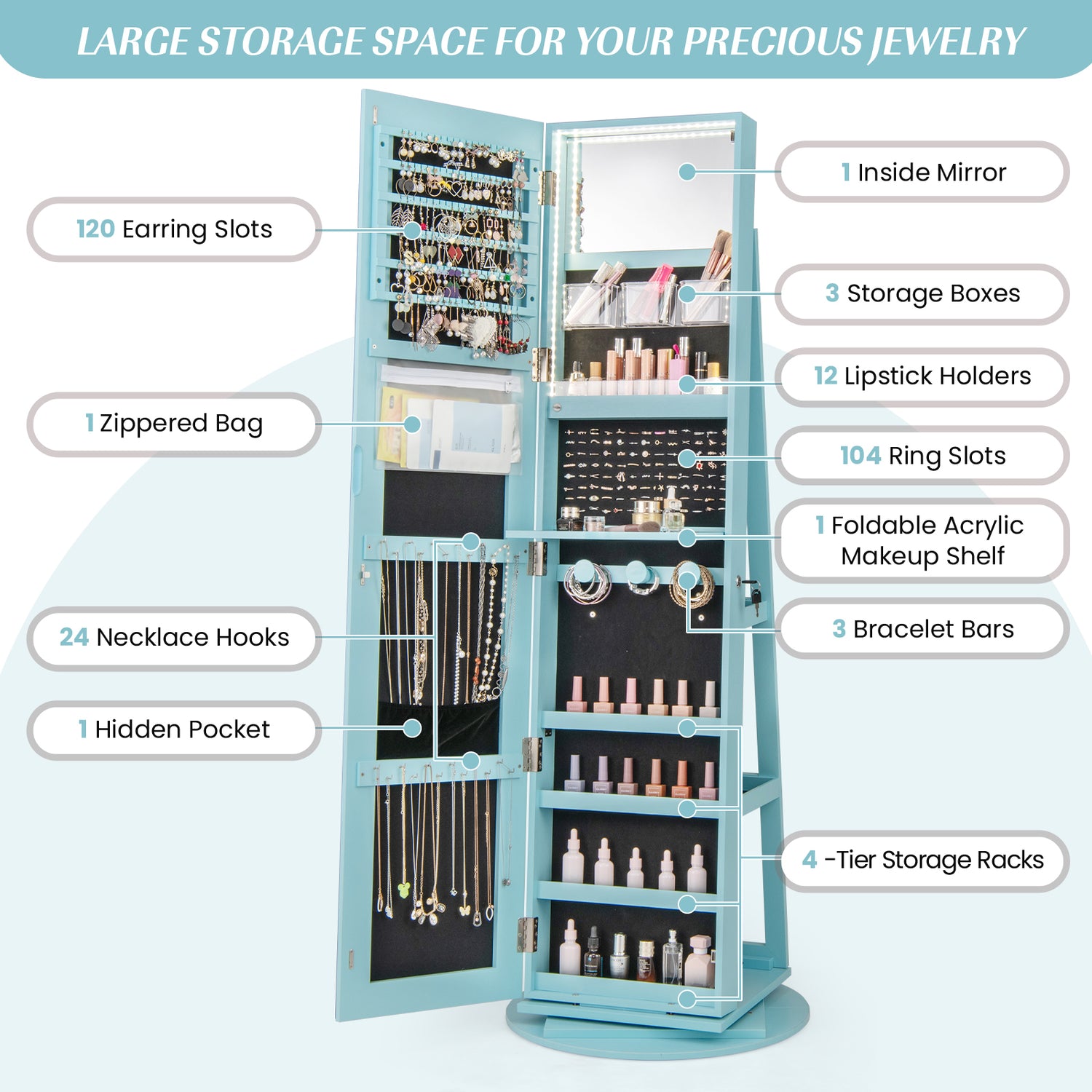 360° Rotating Mirrored Jewelry Cabinet Armoire 3 Color LED Modes Lockable