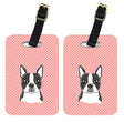 Checkerboard Pink Boston Terrier Luggage Tags – Set of 2 Durable Bag Tags with Straps BB1203BT